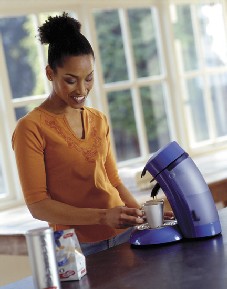 - Kraft Foods bietet seit 2005 Tassimo an. Anfangs in Frankreich, seit März 2005 in der Schweiz, seit Sommer 2005 auch in Großbritannien, Deutschland und Österreich. Neben Kaffee kann die Tassimo-Maschine von Braun auch Tee und Kakaogetränke aus Instantpulver zubereiten. Die Tassimo-Kapseln heißen T-Disc. Auf jeder Kapsel befindet sich ein Strichcode. Damit kann die Kaffeemaschine automatisch die optimale Zubereitungsart anwenden. Anders als bei Nespresso sind die Kapseln mit Kaffee, Tee und Kakaogetränken auch im Handel erhältlich.